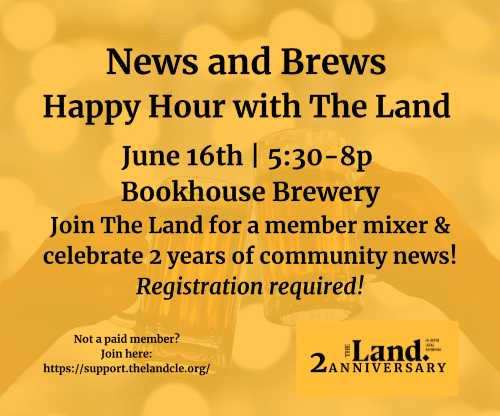 Bookhouse Brewing 1526 W. 25th St., Cleveland, United Stateshttps://www.eventbrite.com/e/news-and-brews-happy-hour-with-the-land-tickets-345802202697 Join The Land for our first-ever member event and a celebration of the 2nd anniversary of our nonprofit community newsroom. Come meet our board members and staff, mingle with other supporters of local news, and hear about some of our plans to expand our community reach. Questions? Contact Cindy Bailie, cbailie@thelandcle.org or Lee Chilcote, lchilcote@thelandcle.org