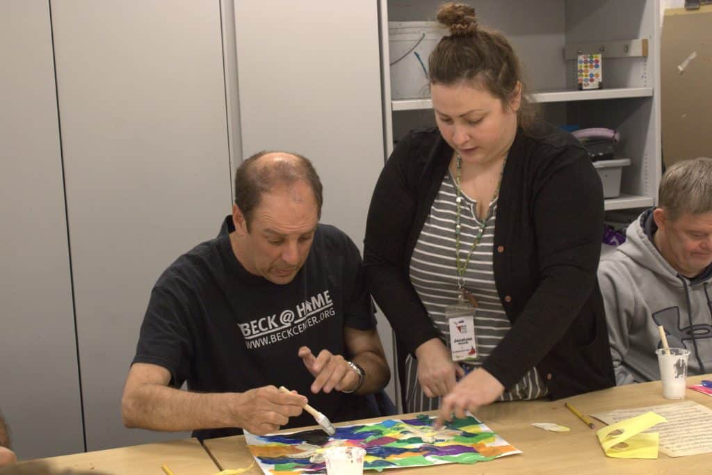 While less goal-driven than traditional arts therapy sessions, the adaptive arts classes are still therapeutic in nature. They focus on the recreational experience of being creative while supporting the social aspect of clients’ well-being, according to Ammon.