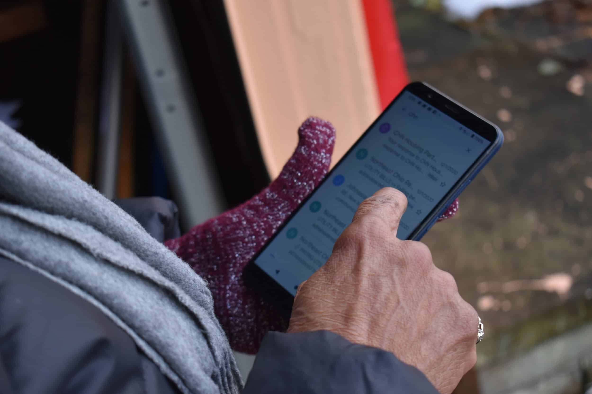 Garfield Heights resident Janet Gill-Cooks scrolls through her phone, showing this reporter the emails she’s sent in her quest to find assistance for her utility bills. Photo by Conor Morris.