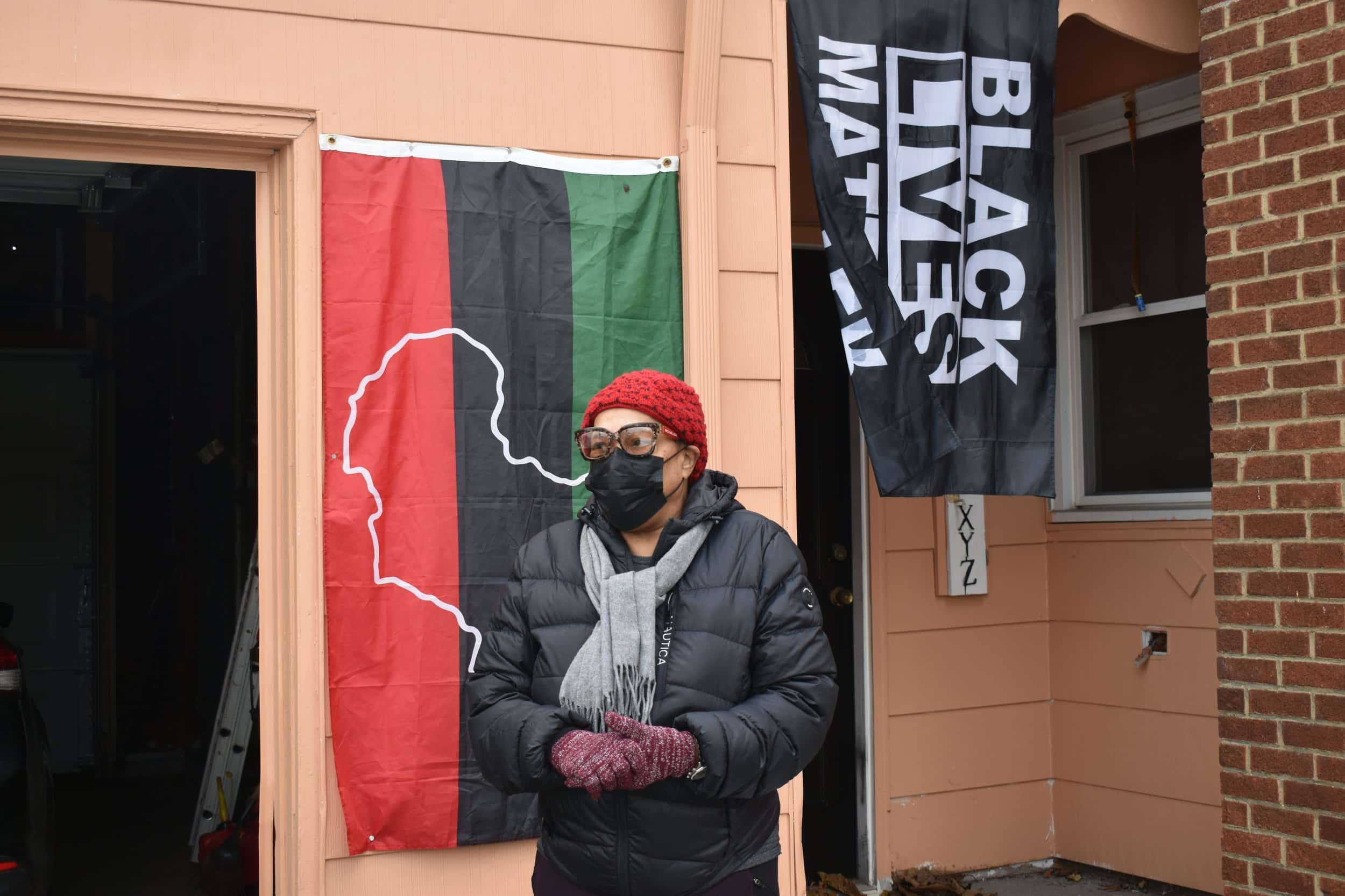 Janet Gill-Cooks stands outside of her garage at her home in Garfield Heights. She’s gotten behind on her utility bills after losing her job during the pandemic last year, and has been struggling to catch up on them, like thousands of other Clevelanders. Photo by Conor Morris.