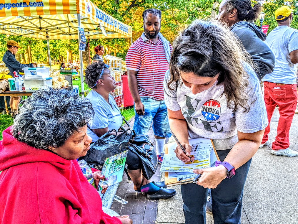 Registration can be slow work. During that WOW show, Haywood was the only person who signed up. Overall, the League helped 728 voters register or apply for mail ballots this year through Aug. 23, versus 185 in all of 2021 and 229 in all of 2020. NOVA helped 526 voters this year through Aug. 11, versus 694 last year. “We’re on the uptick again after the pandemic, as things open up more,” says NOVA board member Zainab Pixler.