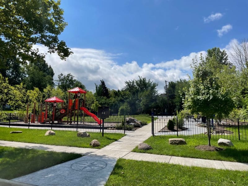 The park built in police officer Derek Owens’ memory features play equipment, peaceful green space, gathering areas, and even a book bank. The Buckeye neighborhood park is maintained by the Cleveland Police Foundation.