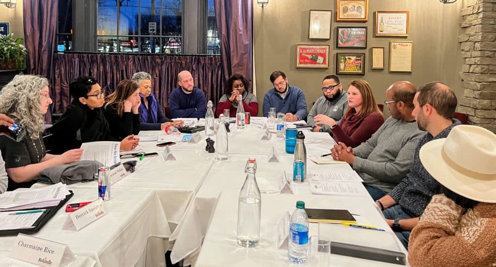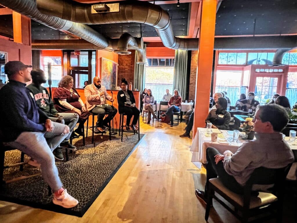 Through the Rekindle Fellowship, cohorts of 16-18 participants meet for four sessions at EDWINS Leadership and Restaurant in Shaker Square. Though all fellows identify as either Black or Jewish, each side of the fellowship is diverse in age, professional background, and interests. Both communities have equal representation among both participants and facilitators.