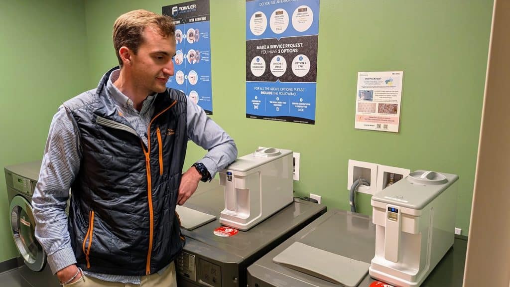 Cleanr is selling filters not just to colleges but homes. Pennington says some customers want to reduce microplastics in storm pipes and septic tanks, which might leak, and they all want to help the environment. “They’re worried about their kids and grandkids and the future.”