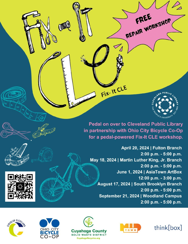 Readers looking to bring their cycles up to speed for the summer can register for Metro West’s Stockyard Bike-a-Thon at the H. Barbara Booker Elementary School Garden behind Clark Elementary School at 2121 West 67th Street. For recurring repair opportunities, cyclists can aim their helmets at Metro West’s calendar and OCBC’s blog to learn about upcoming events like fix-a-thons or volunteer with the co-op to earn credits for new components or an entire bicycle. Once bikes are in tune, Bike Cleveland’s cycling events calendar shows Cleveland residents when and where to use them and how to find BC’s Better Streets Committee meetings.