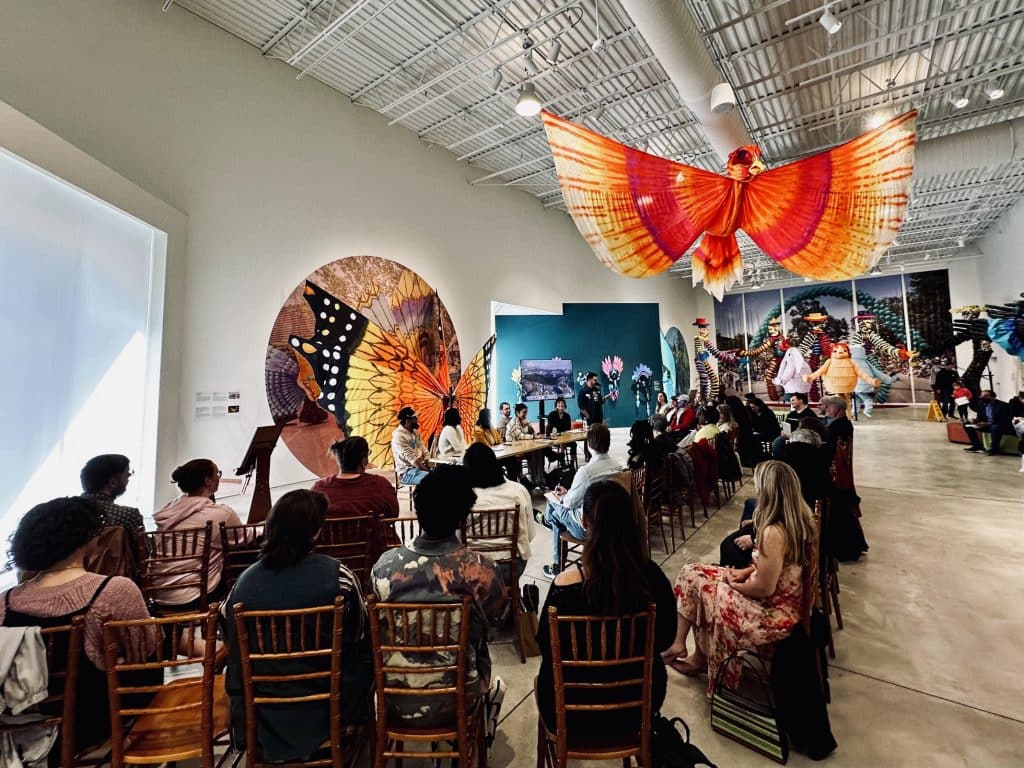 The conference concluded with a poetry reading at the Maelstrom Collaborative Arts building, hosted by Kevin Latimer, and featuring celebrated local poets Carrie George, Lauren Haldeman, Philip Metres, Cindy Juyoung Ok, Diana Khoi Nguyen and Alyssa Perry. After the reading, a community open mic offered writers of all experience levels a chance to take the stage and share their work with a supportive crowd, snapping fingers for applause.