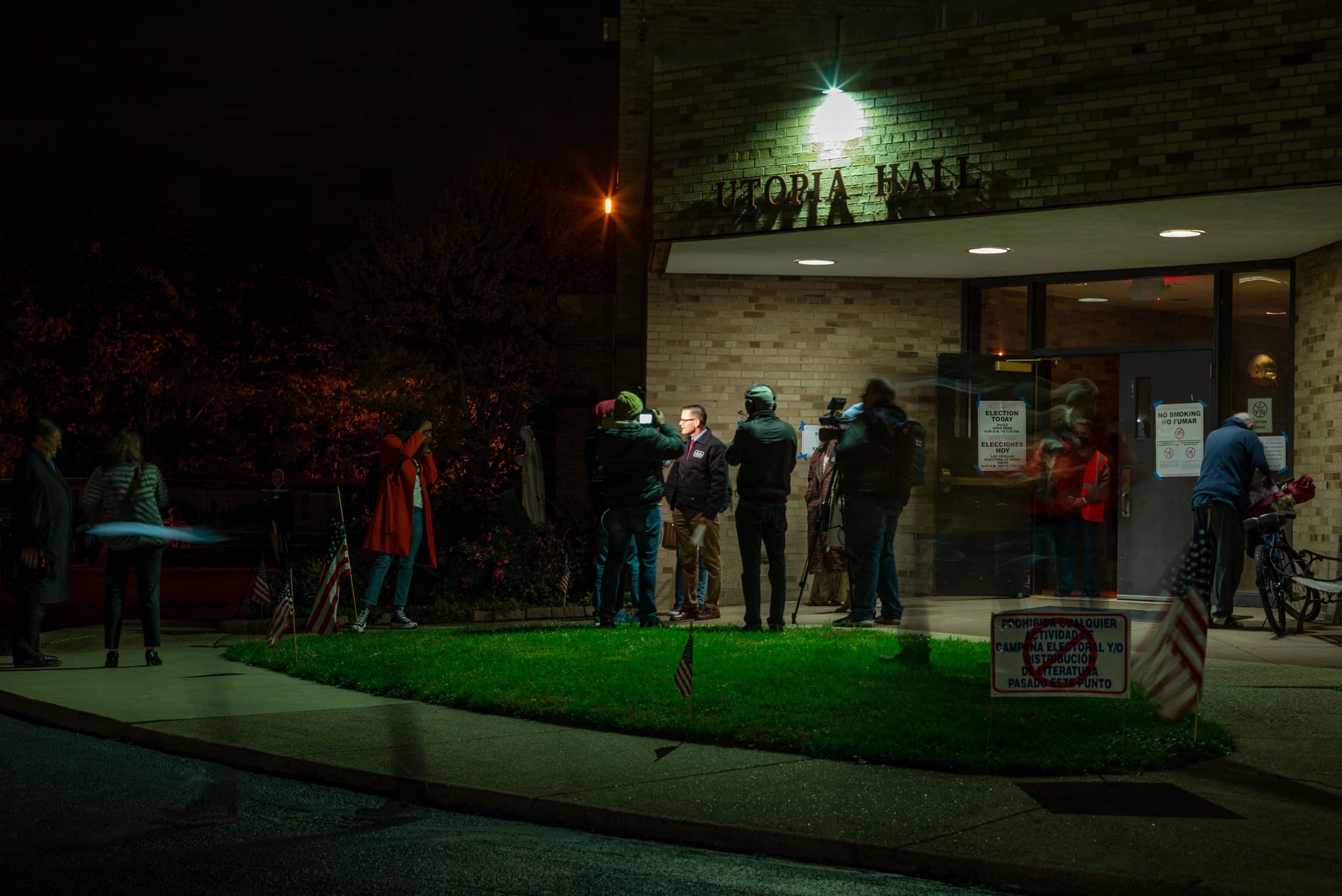 Mayoral Candidate Kevin Kelley flanked by press as he prepares to cast his vote inside the polling station at St. Thomas More Church in Brooklyn on General Election Day on Tuesday, Nov. 2, 2021. Photo by Michael Indriolo