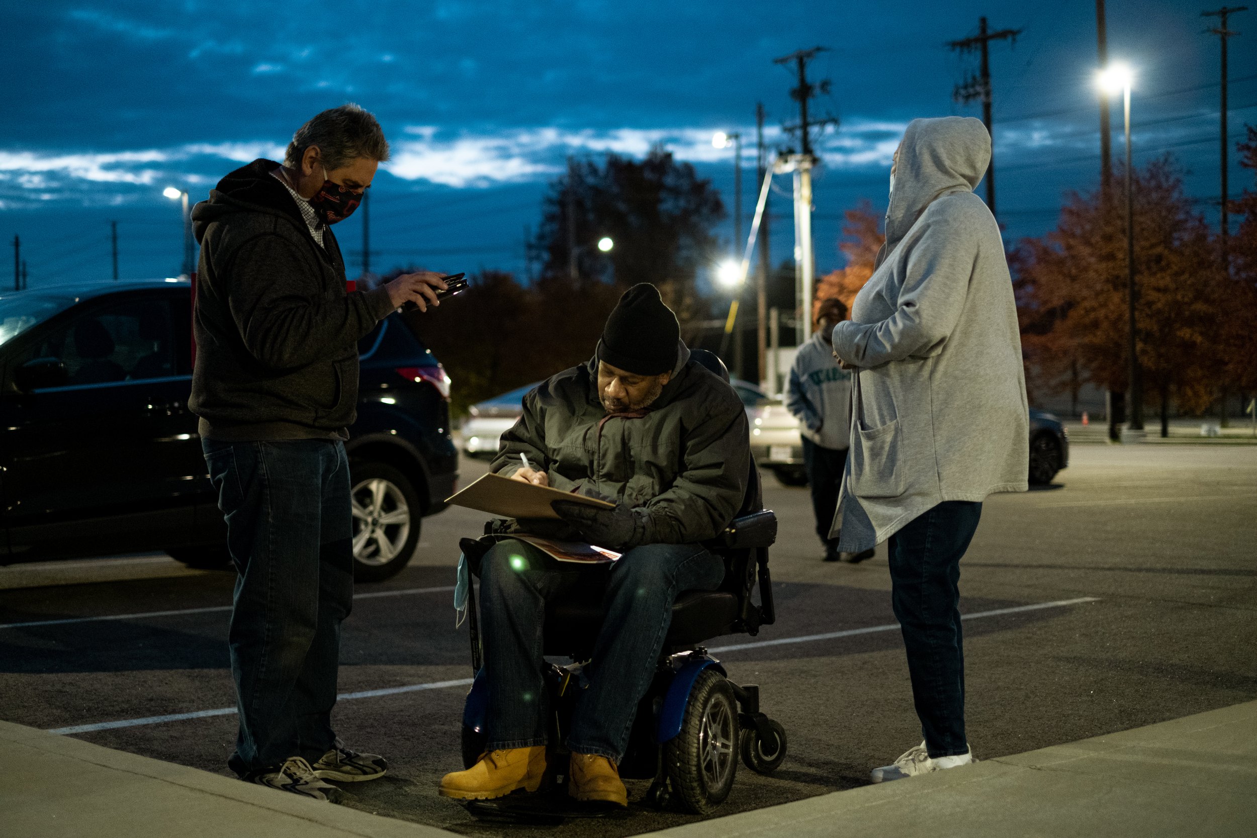 So he cast his vote for Bibb from the sidewalk outside the high school. With his movement limited by a physical disability, poll workers Jeff Nemeth and Mary Robbins brought a ballot out to him.