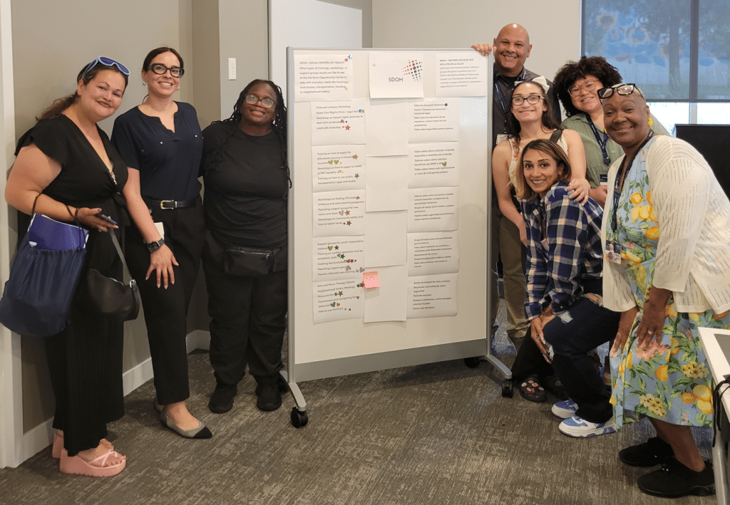 The Social Determinants of Health (SDOH) Board drew attention to everyday needs. Suggested workshops included trauma-informed care, lead safety and youth support groups for those impacted by violence. Residents expressed support for moving MetroHealth programs like Daddy Bootcamp to the Opportunity Center and offering services like health screenings and preventive care workshops.