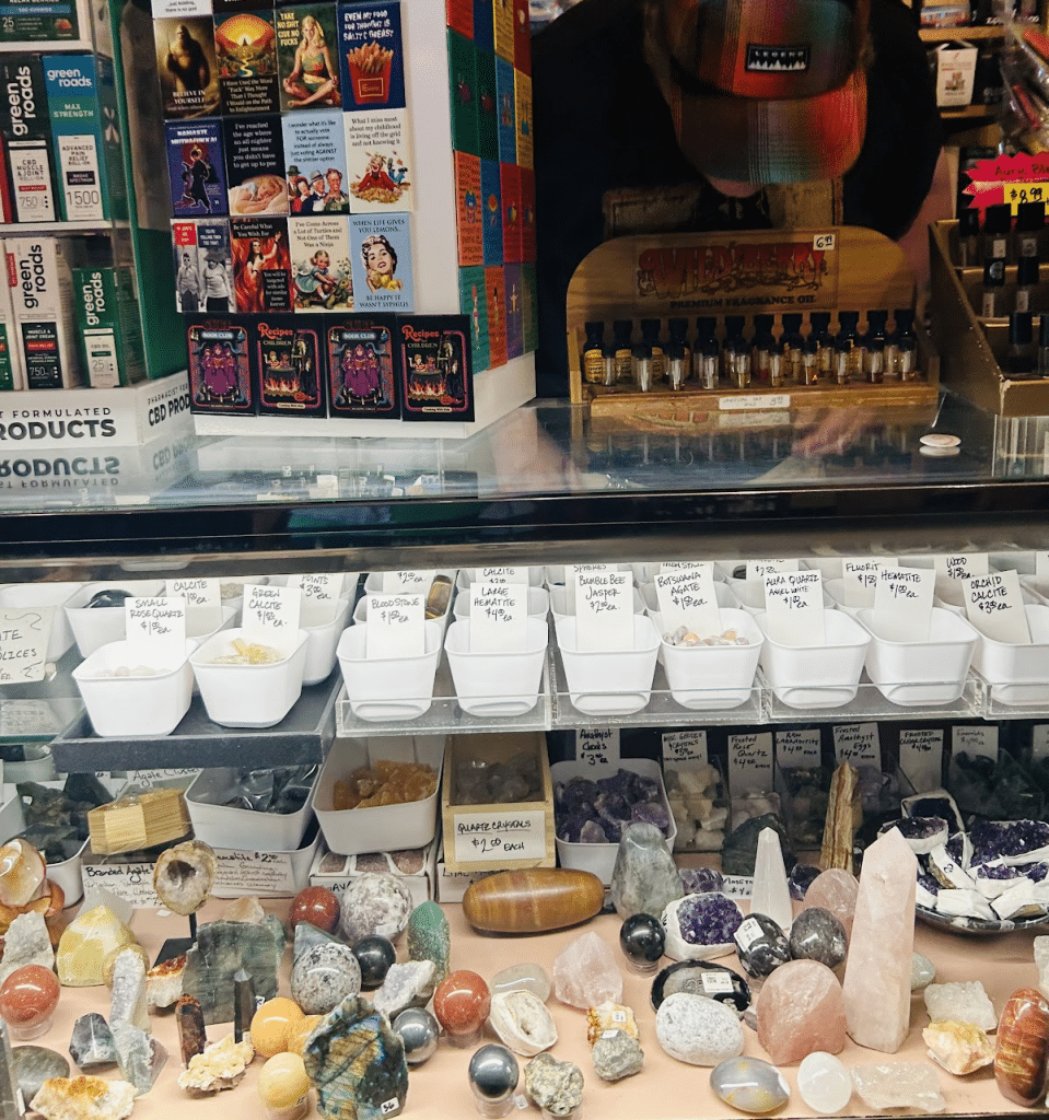 Daystar was always family-friendly – with guardrails. The feng shui is perhaps curated with intent: jewelry, candles, bumper stickers, patches and incense in the front.