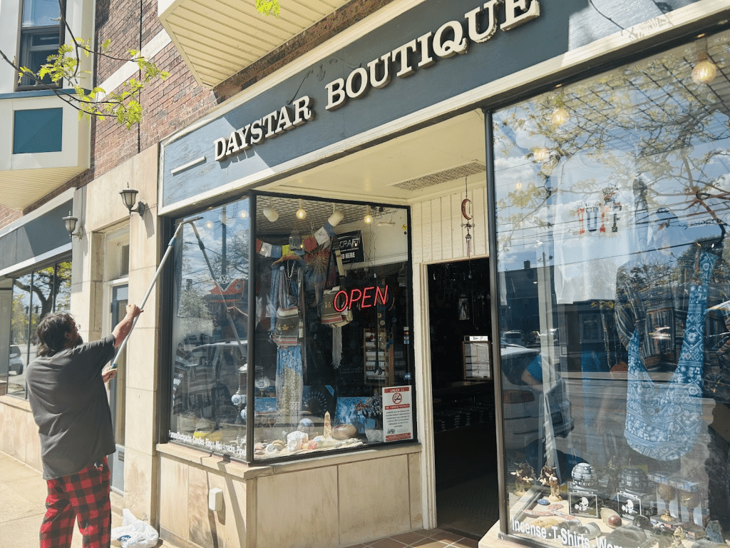 He said that his dad was classmates with local T-shirt icon Daffy Dan, and he thinks that small stores in Lakewood like Daystar survive because “They would treat people like gold.” William finished his windows, and then hung around inside.