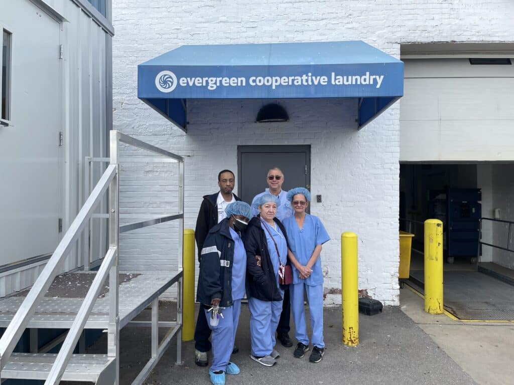 Damon Allen, who has worked at Evergreen Laundry for three years, said working at Evergreen has given him stable employment, and now he’s taking classes to move into a supervisory role. “I transitioned from the streets,” he said, explaining that before Evergreen, he didn’t have a stable job and hadn’t finished college. “They give you a chance, and I’ve fulfilled that chance.”