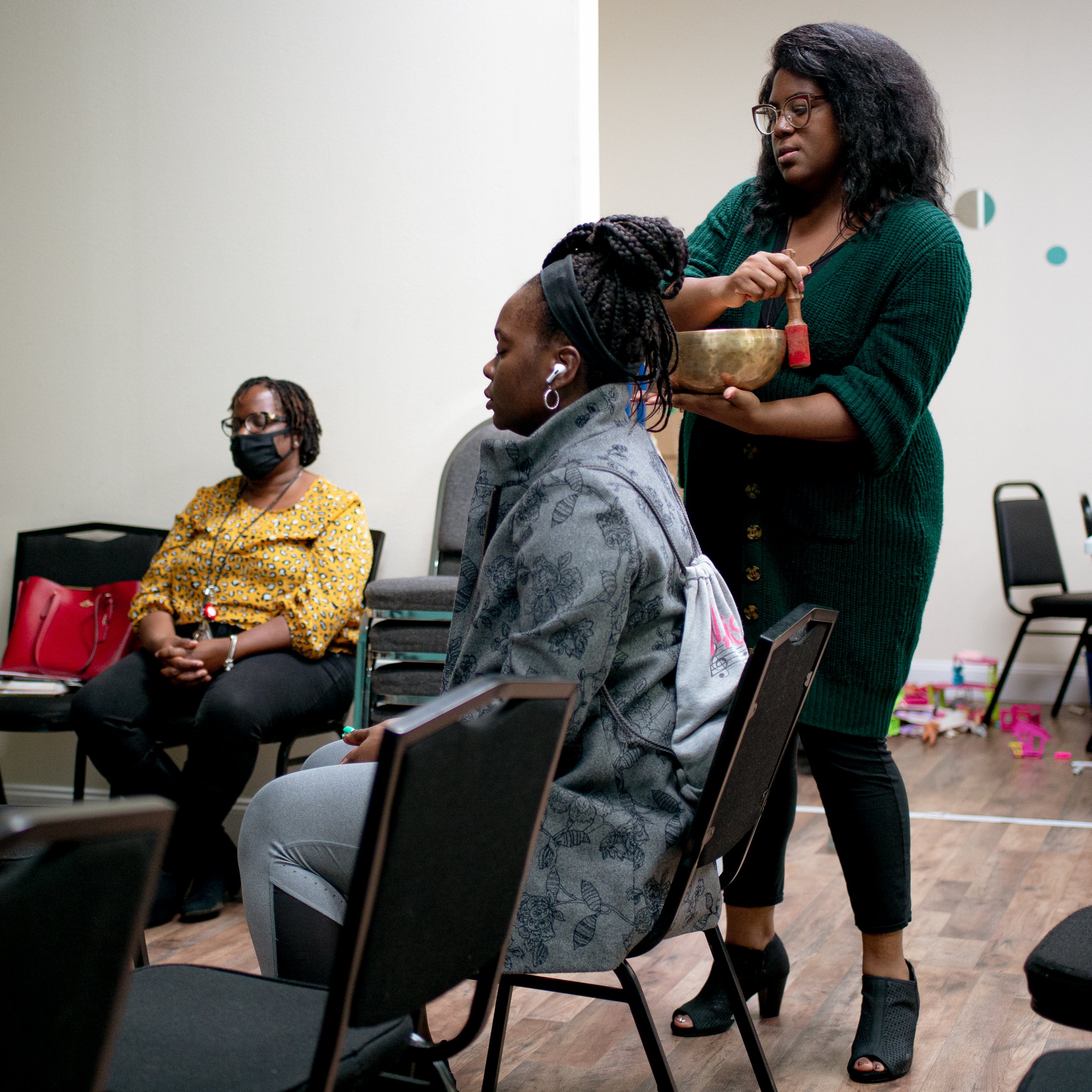 The emotional and spiritual pieces are what Shannon Yarbrough, an occupational therapist and holistic practitioner at St. Vincent Charity Medical Center, focused on during her time speaking at Ghetto Therapy. But she did more than speak. Yarbrough played a series of sound bowls, tools commonly used in meditation for the unique, stimulating, and soothing frequencies they produce when struck. Children playing in the room immediately fell silent the moment Yarbrough started playing a bowl.
