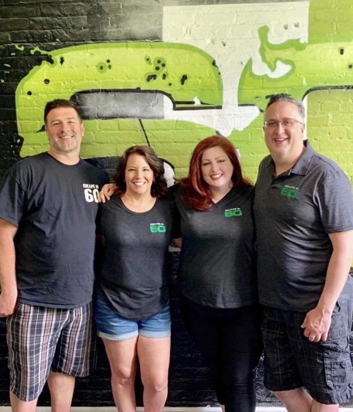 Mondie Gonzales, center left, poses with her husband, left, and two friends, all co-owners of Escape in 60 in Cleveland. Gonzales recently won the JumpStart Inc. entrepreneur showcase competition with an idea to design escape rooms and other custom adventures for the Cleveland business community. (Photo courtesy of Mondie Gonzales)