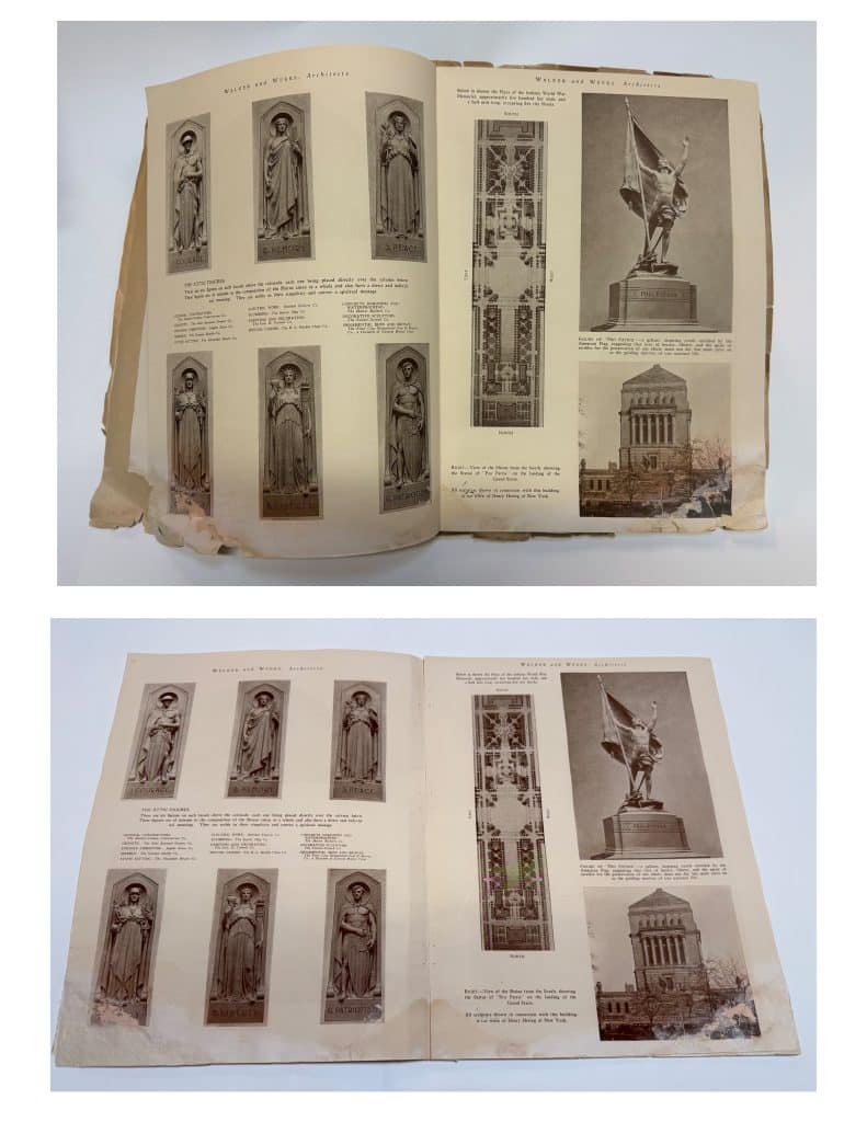 Her shop spent much of the summer repairing a 1930 Architectural Review of the Mississippi Basin devoted entirely to Walker & Weeks, the Cleveland architects of Cleveland Main Library, Public Auditorium and other local landmarks.
