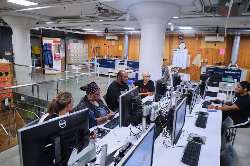 “I was having a fantastic time learning how the digital fabrication technology was making change in so many places in the world, and my access to the network led me to think how I could make change in the community I love the most, Glenville,” said Pryor-Jones.