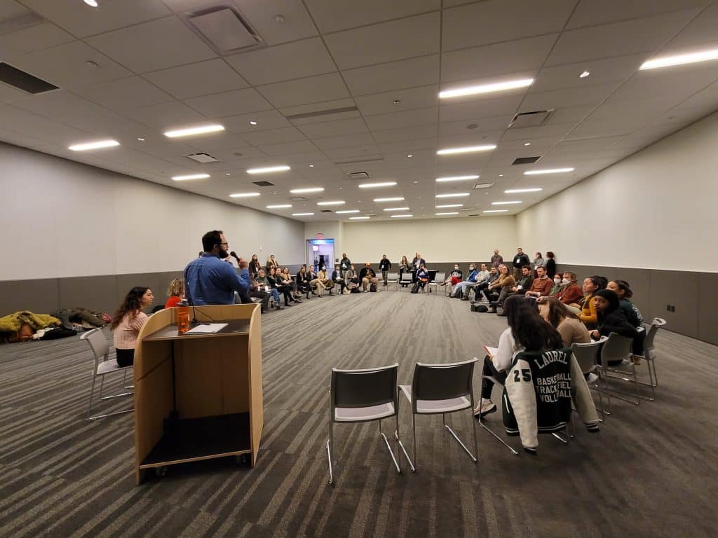 After remarks from Ayat Amin — one of the event’s organizers — about the possibilities of cooperatives to help advance environmental and economic justice, attendees heard from Jonathan Welle, lead organizer and founding board member of Cleveland Owns. Welle addressed the work that Cleveland Owns is doing to help build Cleveland Solar Cooperative, Ohio’s first community-owned solar cooperative.