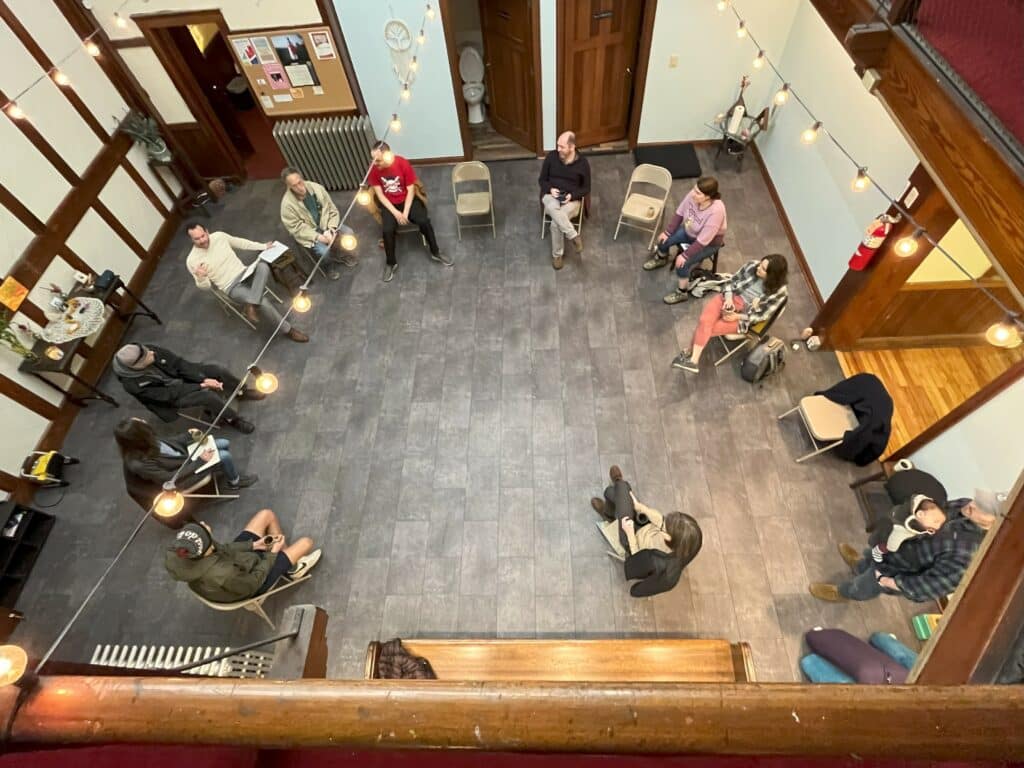 What brings us here every other Sunday, or rather who brings us here, is Matt Whisenhunt, a co-founder of Harbor and Bridge Community Center. In August 2021, he started inviting people into a room on Sunday mornings to have open conversations about current events, both those affecting our neighborhood and those beyond.