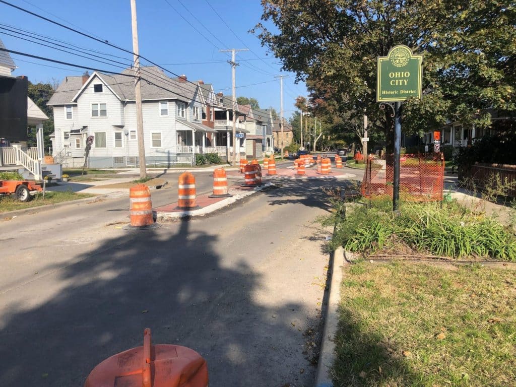 The first phase of the construction of seven traffic circles along a busy west side boulevard recently finished. Franklin Boulevard residents have been concerned for over a decade about speeding and reckless driving on the street, particularly the portion which runs from W. 25th St. to W. 85th St. through the Ohio City and Detroit Shoreway neighborhoods. The city of Cleveland’s new design for the street, with traffic circles and other changes, is aimed at slowing down traffic and making it safer for pedestrians. The first phase addressed Franklin Blvd. from W. 85th to W. 50th, and the second phase will address the W. 50th to W. 25th section. Community input has been a driving force spurring and shaping these changes, starting before the Franklin Boulevard Rehabilitation Project began in 2018 and remaining strong even as the project approaches its 2023 completion.