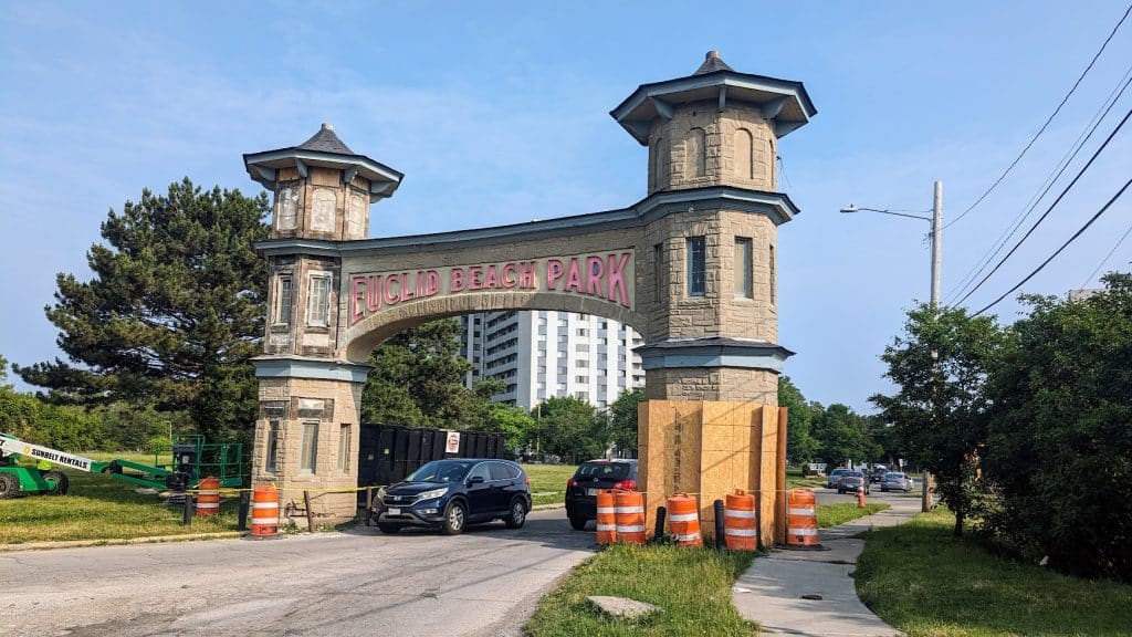 The arch once welcomed visitors to the driveway of a beloved lakefront amusement park. Now it straddles narrow East 159th Street near a confusing intersection with Lakeshore Boulevard. Vehicles keep playing Dodgem with the arch, and both sides keep losing.