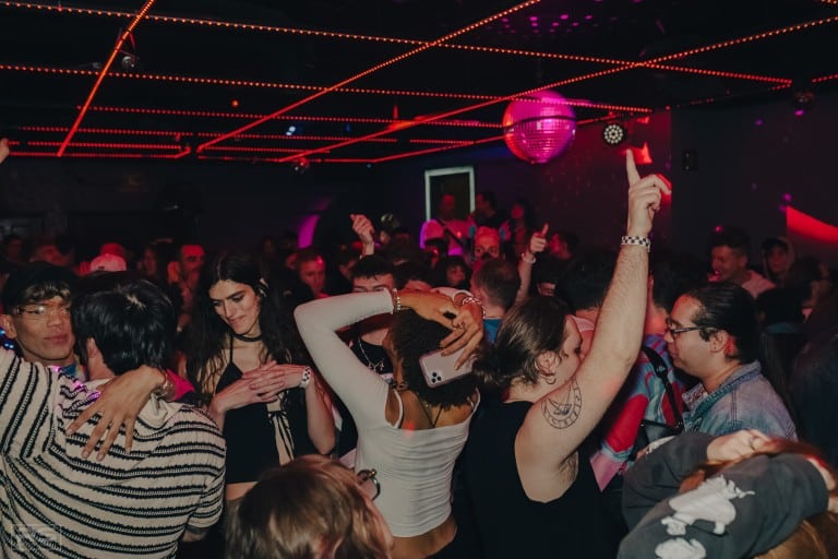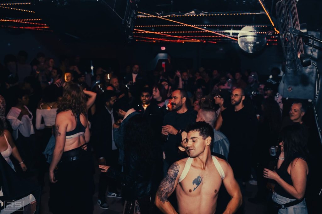 A flurry of partygoers, clad in their Saturday best, ascend onto the dancefloor. Music surges from the DJ decks—an altar at the room’s core. The relentless rhythm binds the crowd in a collective, hypnotic urgency to fully exist in the moment. Under a twinkling disco ball, go-go boys and girls grind in glory. Drag queens glide past patrons with regal nonchalance, as coworkers, new friends, old acquaintances—people from all corners of daily life—nod in quiet recognition.