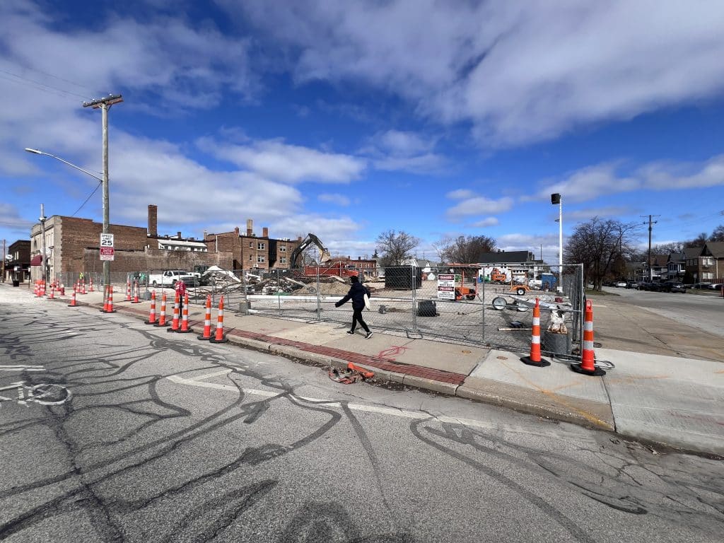 A former car dealership that straddled both sides of Detroit Avenue, just east of West Clifton Boulevard, has been smashed to rubble.