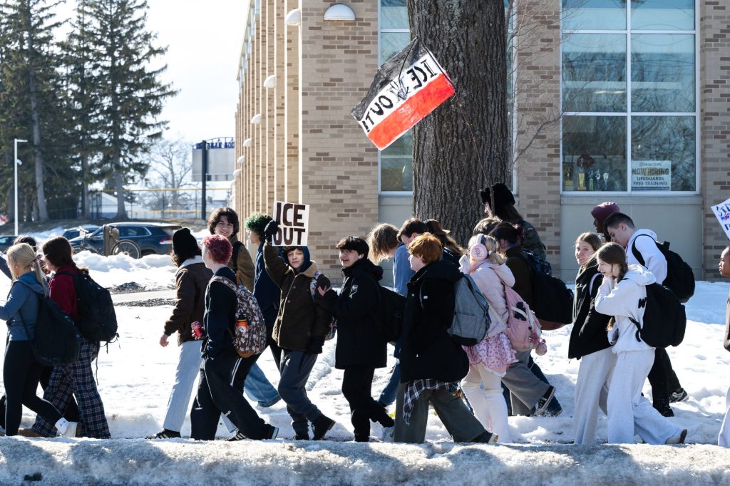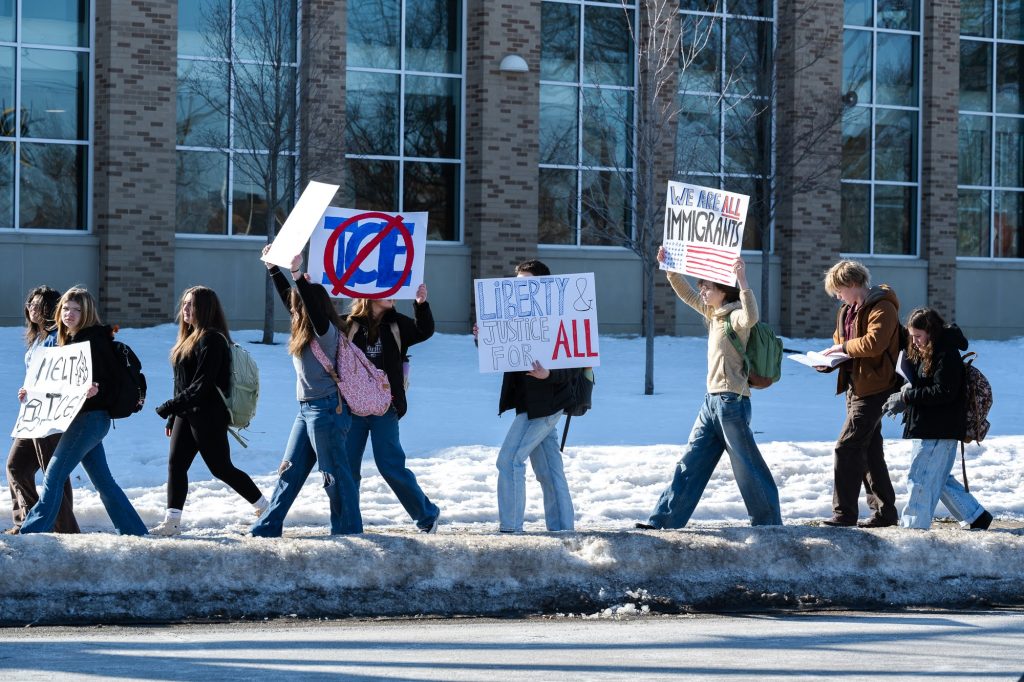 During the walkout, students chanted, “ICE Out!” and “No Trump, no KKK, no fascist USA!”
