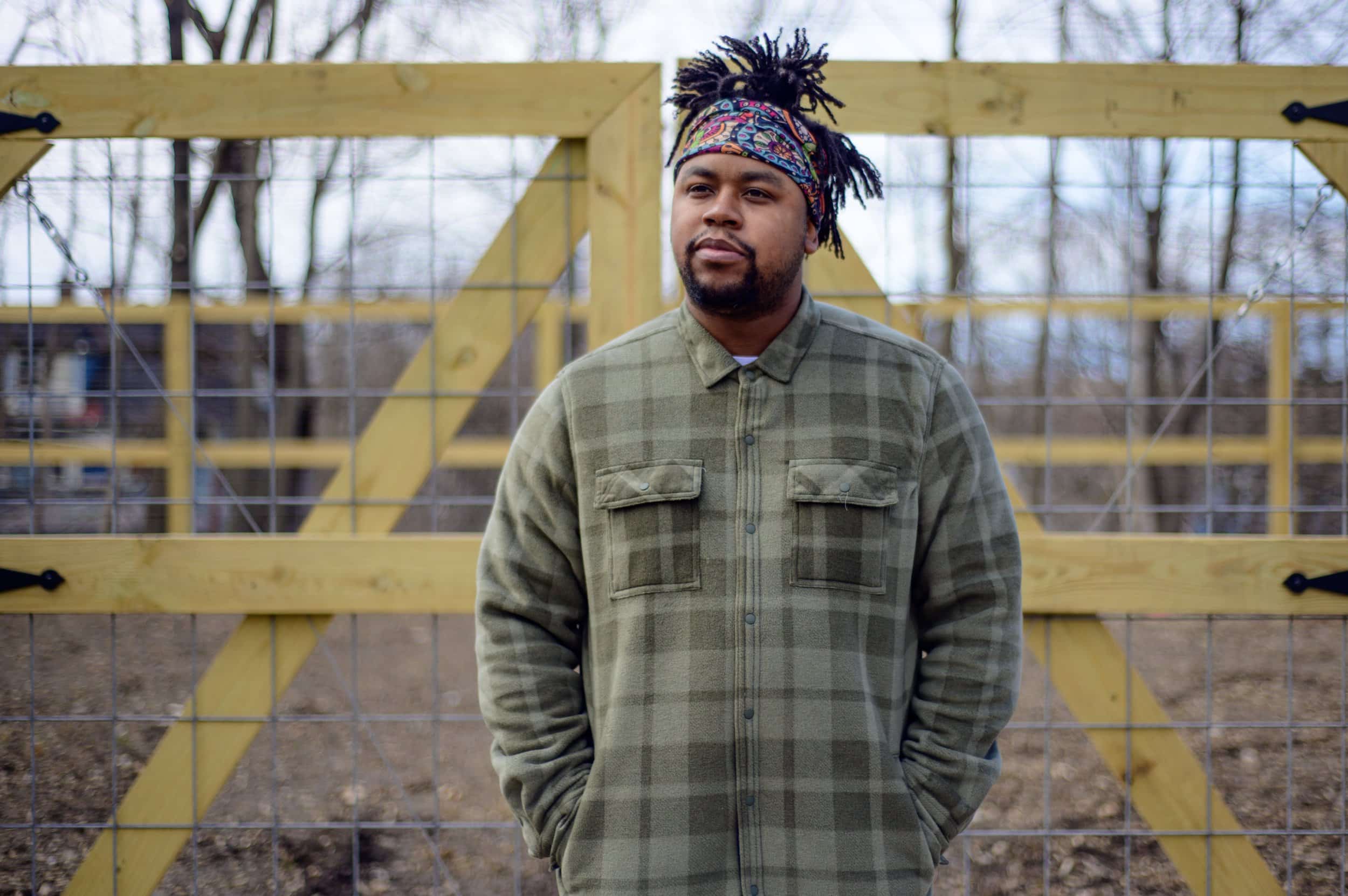 Khalid Ali, the Urban Greenspace Coordinator at the Western Reserve Land Conservancy, poses for a portrait at the Woodhill Community Garden on Friday, April 1, 2022. Photo by Michael Indriolo