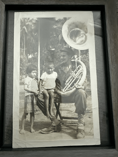 Many Cleveland and Northeast Ohio residents have had friends and family who served either in the Navy, or the US Military. My own grandfather was a World War II Veteran who served in the South Pacific with the US Military. Pictured below is my grandfather, Harlan Green. He was a graduate of the Ohio State University, he dotted the eye performing ‘Script Ohio’ in the 1950s and naturally took his tuba to war with him, bringing a little bit of Ohio with him in the process. In this photo, he is pictured entertaining two Filipino children with his beloved tuba.