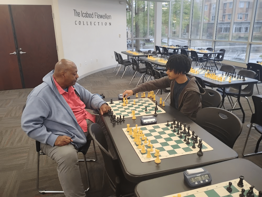 It’s a rainy Saturday morning in May as people file into the East Cleveland Public Library. What begins as a slow trickle – locals looking to devour the latest books, and students using the computer lab – turns into a large diverse group of young and old alike competing in a free local chess tournament.