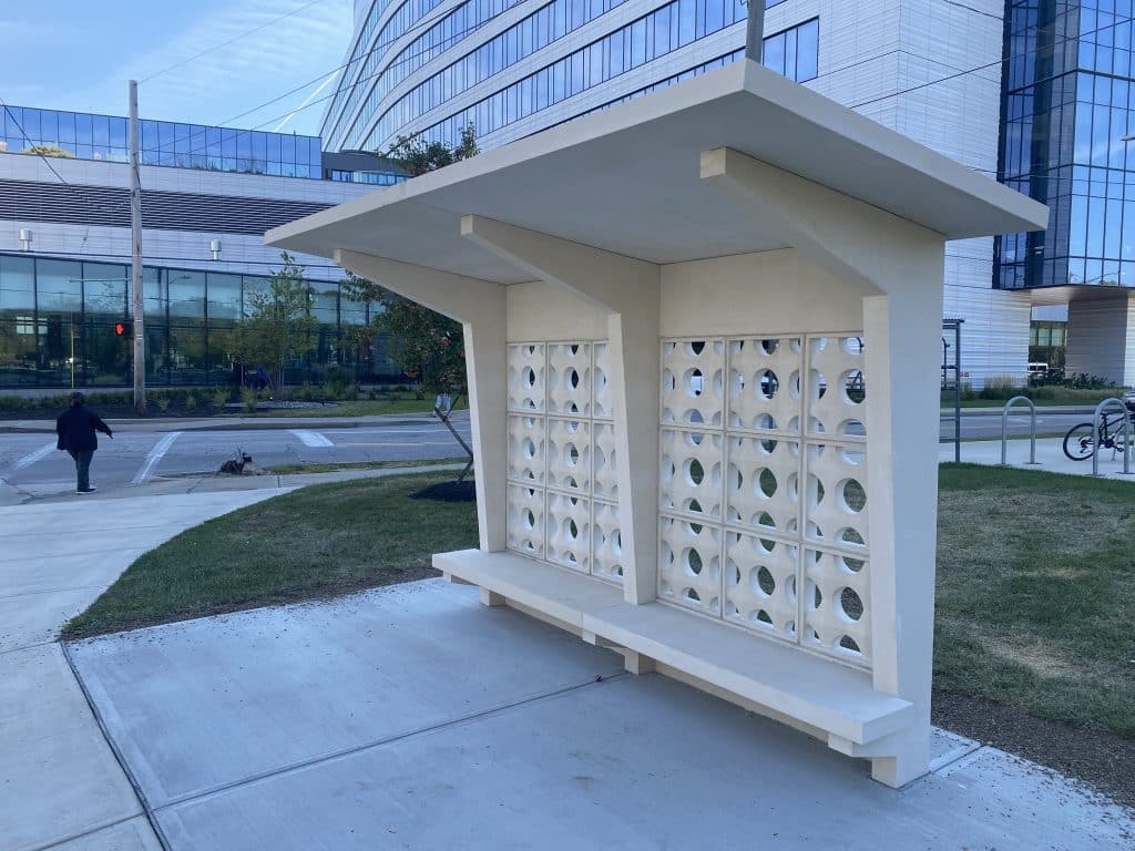 The longer one contemplates the new bus shelter at MetroHealth Glick Center, the more beautiful it becomes.
