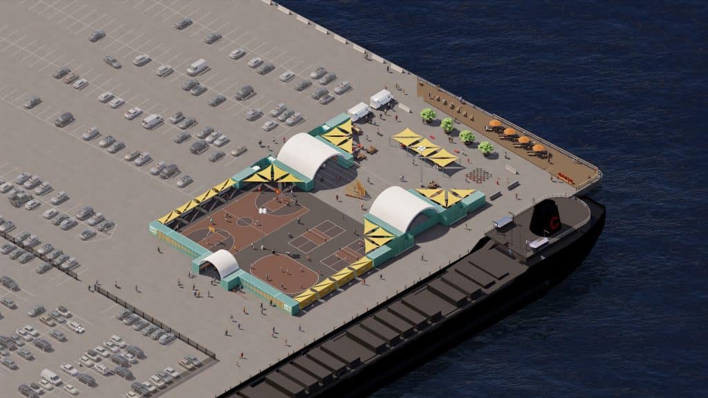 In the near-term, the one-acre park will give visitors a sweeping view of Lake Erie and the Cleveland skyline. Otherwise, flexible space has been allocated for basketball, pickleball, yard games and open seating. Covered areas will host locally sourced food and beverage stands, while a small stage will bring the noise via DJs and live music.