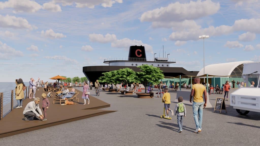 Additional renderings of the proposed pop-up park are below, courtesy of North Coast Waterfront Development Corporation.
