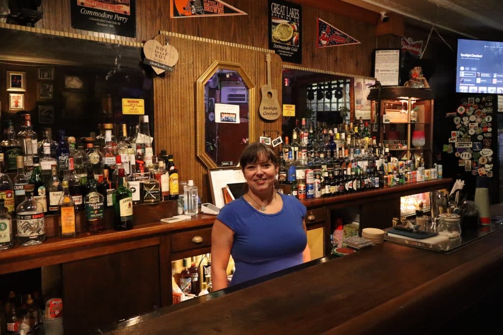 On the Wednesday night before Thanksgiving, a small corner bar on the west side of Cleveland was filled with the sounds of rock, blues and jam band music. It was jam night at Spotlight Cleveland, and the tiny, wood-paneled bar – what the owner calls a “micro venue” – was full of people. As the night went on and the cozy space filled up, people spilled out onto the patio, where they huddled together in the cold, drizzling rain and carried on talking and laughing.
