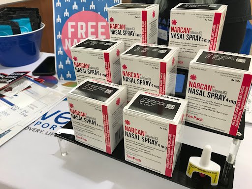Paige Snyder, a harm reduction specialist at Thrive helping a peer with NARCAN.