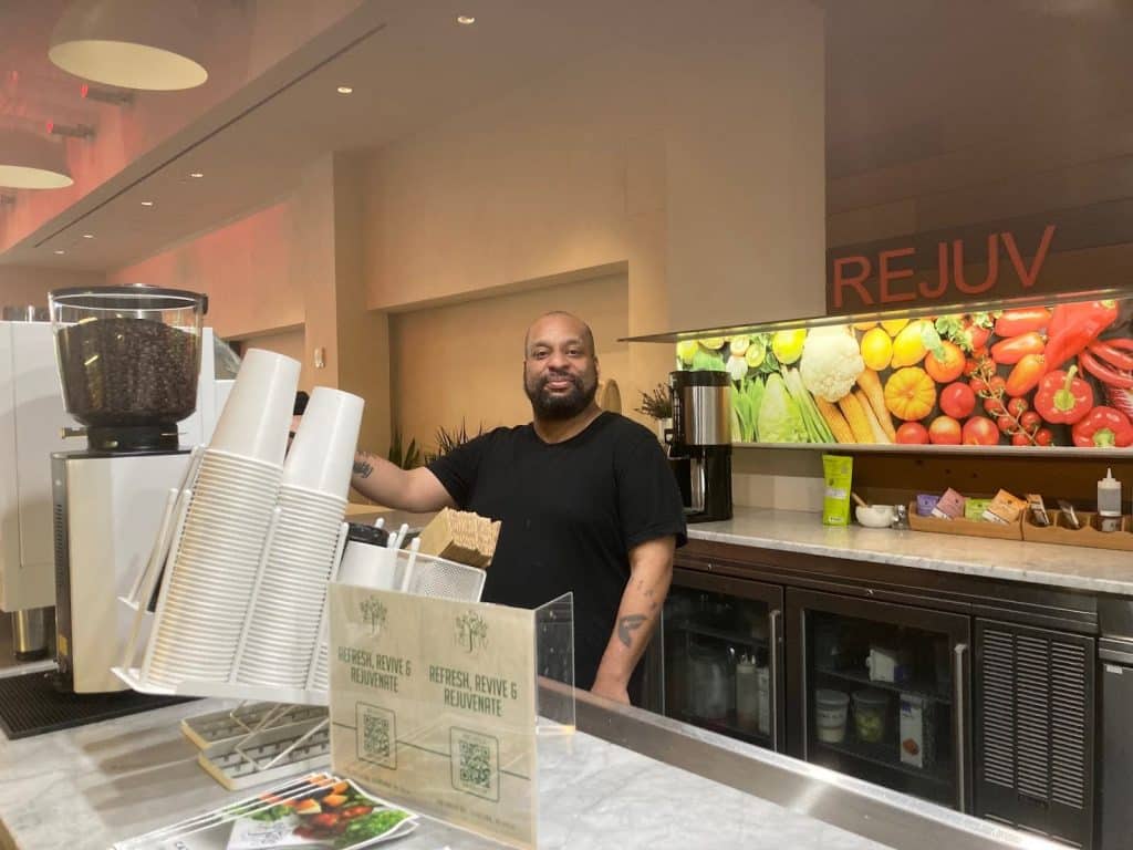 CJ Wilkerson, front of the house lead at Rejuv, says the reception has been positive, “Office workers in the area love that they have a place near work, where they can eat clean meals,” he says “They know that they’re getting real food, not processed food, full of additives and preservatives.”