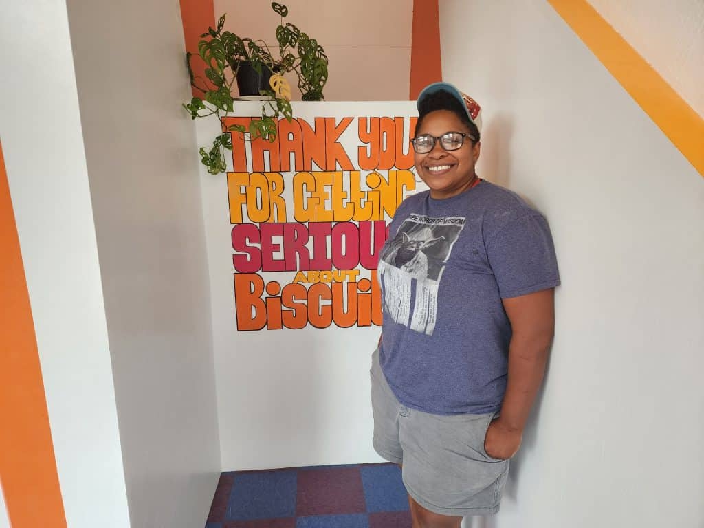 In 2019, I started the biscuit company as just pop-ups. I was using different commercial kitchens. I was using Cleveland Bagel’s kitchen and even The Flying Fig’s kitchen to be able to produce. We would go to different cafes or even other spaces to serve biscuits. We had cafes in Lakewood, the Collinwood area, and on Waterloo that would pop-up. We even had downtown pop-ups.