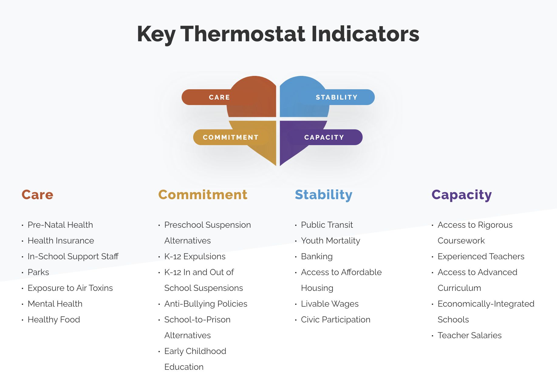 The Loving Cities Index framework aims to investigate the extent to which city systems actually address their institutional inequities by grouping statistics into four key fields: care, commitment, stability and capacity. It’s a matter of collecting the data and creating a report, she said.