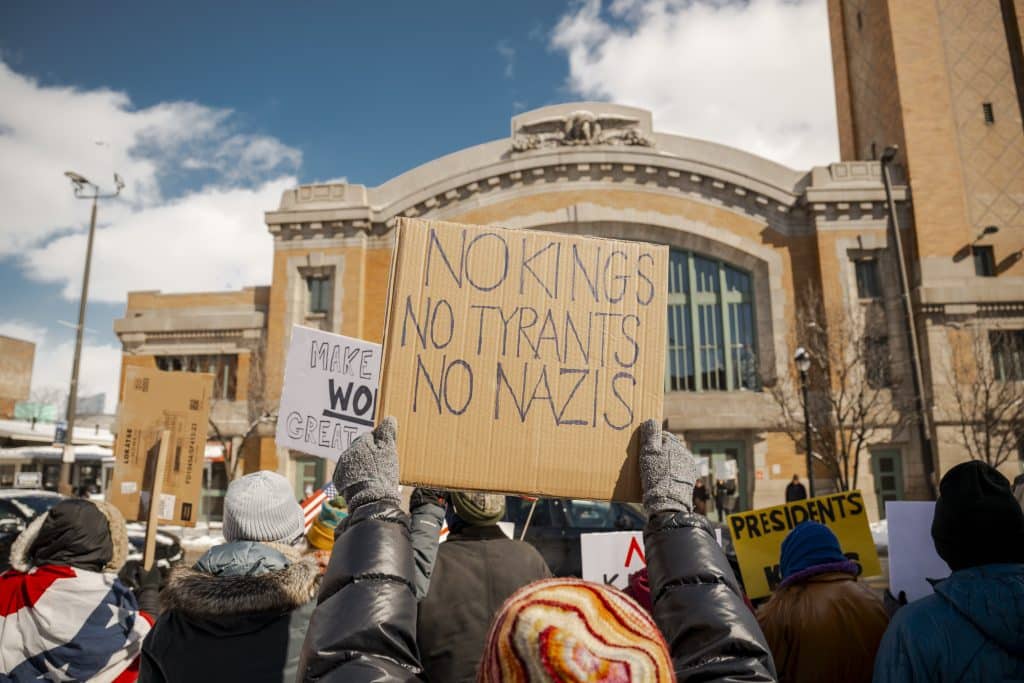 On Presidents Day, a crowd gathered outside at Market Square Park to protest President Donald Trump and Elon Musk. The crowd asked for more checks and balances on the new administration, and specifically the Department of Government Efficiency (DOGE).