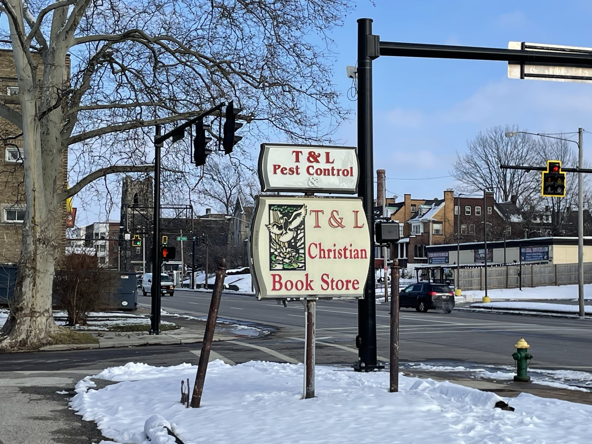 If you’ve ever driven down Euclid Avenue in East Cleveland, you may have noticed the blue house at 13633 and the signs by the street: T & L Pest Control. T & L Christian Bookstore. You may have also seen the signs in the front windows: Choir & Clergy Robes. Bibles. Mice & Rat Bait. Wait, what? Now I’ve seen it all!