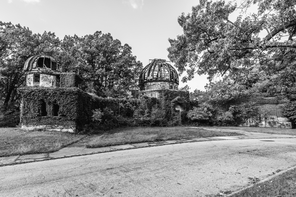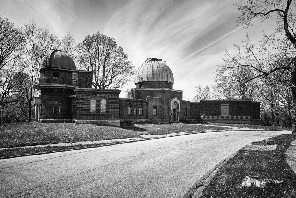 Another 9.5-inch telescope with a big story, closer to home, is the one that was built in 1893 for the backyard of the adjoining properties where Warner and Swasey had built complementing homes with a single shared driveway, split for access to each of the owner’s garages. The observatory stood at that split, shared by the partners, and enjoyed by their guests. In 1919, the telescope was refurbished and updated and installed in an observatory building on Taylor Road in East Cleveland as a gift to the Case School of Applied Science.