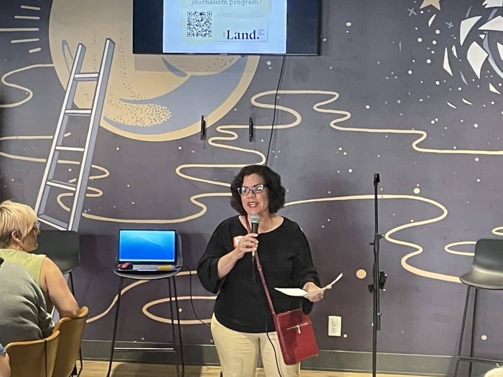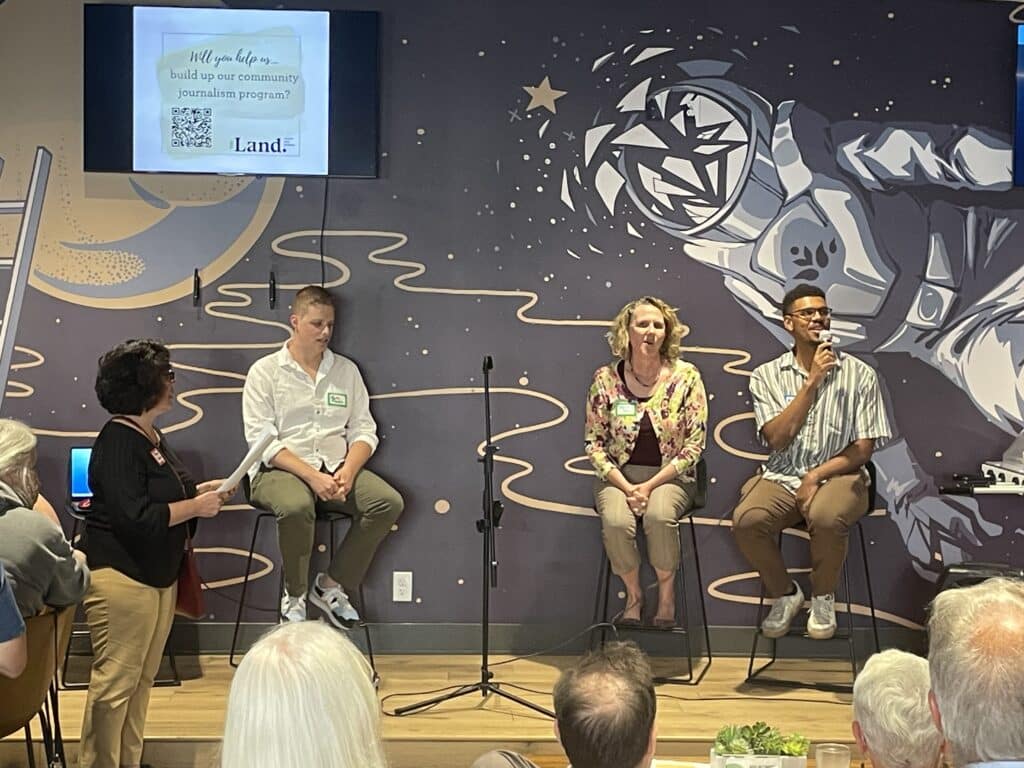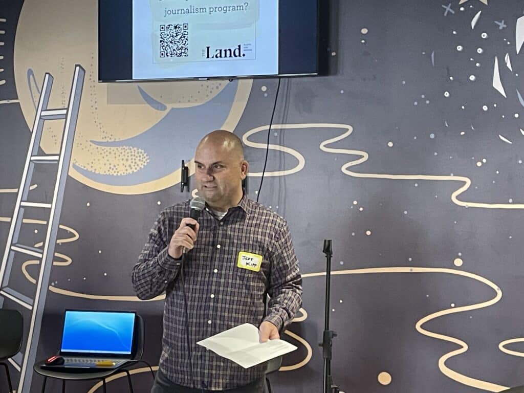 The Land’s acting executive director Jeff Kipp kicked off the evening with an overview of the organization’s work and its recent accomplishments, including graduating more than 50 community journalists from its community journalism training program and publishing nearly 50 stories written by community members. “This is real news,” he said. “Including community voices in journalism is incredibly important to how our city grows and develops.”