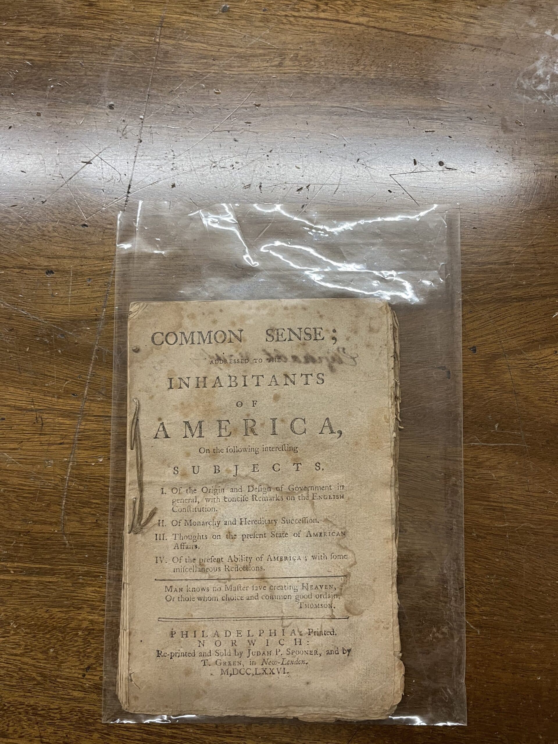 First published in 1776, Thomas Paine’s 47-page “Common Sense: Addressed to the Inhabitants of America” outlined strategies for early Americans to oppose British rule. Zubal values his copy, the sixth edition printed in Norwich, Connecticut, at $250,000. Photo by Collin Cunningham.