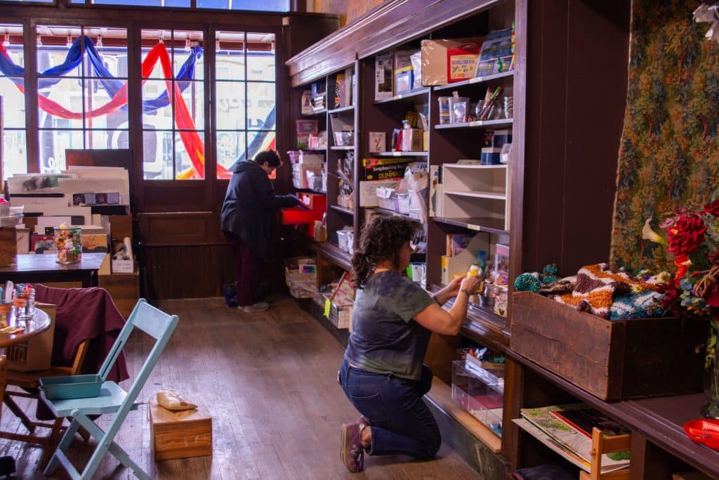 One thing that this big move showed was the depth of community support. Many new faces showed up to help them move and began to get involved this year. For example, Liz, a volunteer who was busy in the shop when I came to visit, helped Lauren find creative ways to display and organize the shelves. “About 40 people showed up to help us move in one weekend!” said Conti. The group is working to create a new volunteer system with three levels of volunteer support.