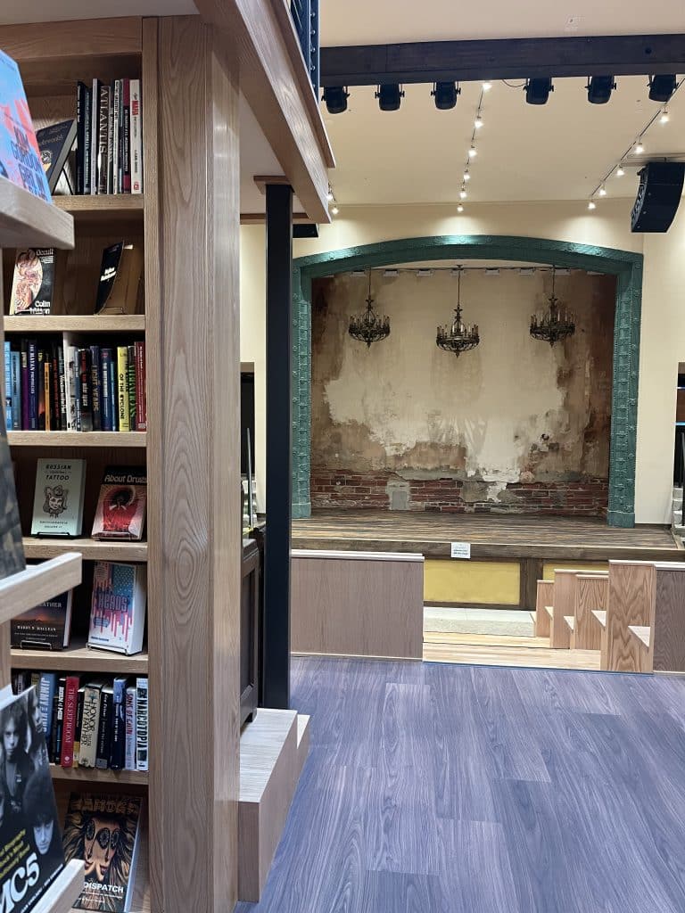 Ferrante says that although they do have a new cafe with expanded offerings and the historic stage, the store, of course, still pivots around the books. Visible Voice Books tripled its inventory with the new location. The bookstore sells new, used and rare books, with a warehouse of 40,000 books available for purchase online. The bookstore focuses on modern fiction, counterculture writing, insightful journalism, poetry, politics and collectible art and music books. Customers are encouraged to bring in gently used books to sell, and will receive an offer within a few days.
