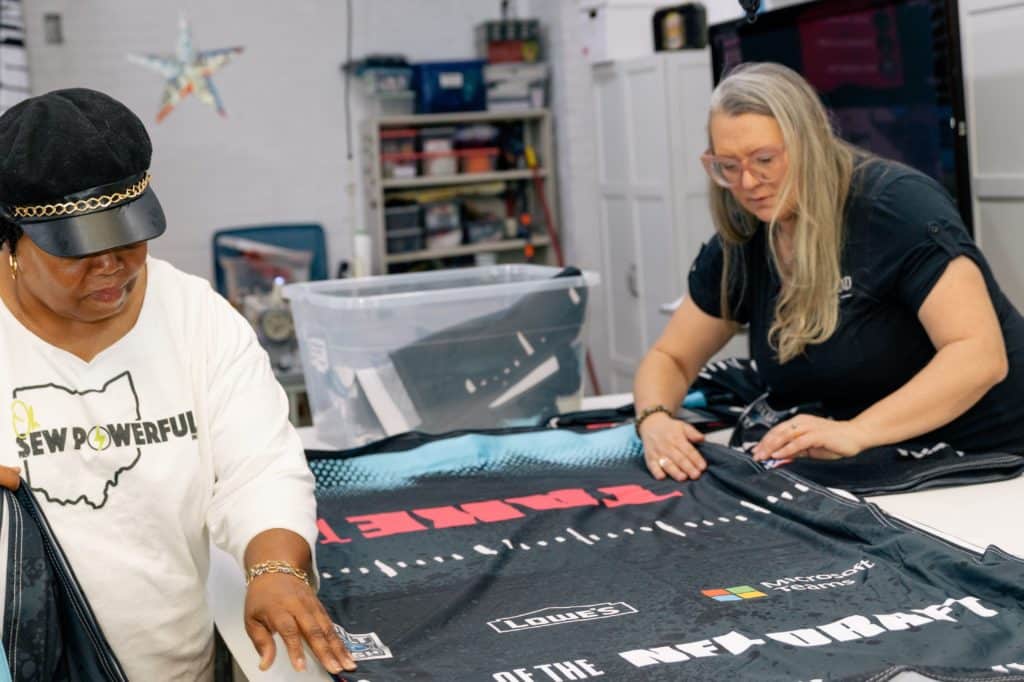 Cleveland Sews, a sewing company that operates out of a renovated warehouse on Cleveland’s east side, is partnering with the Cleveland Cavaliers and the NFL to turn recycled banners into handbags with the help of a $3,000 Circular Cleveland grant.