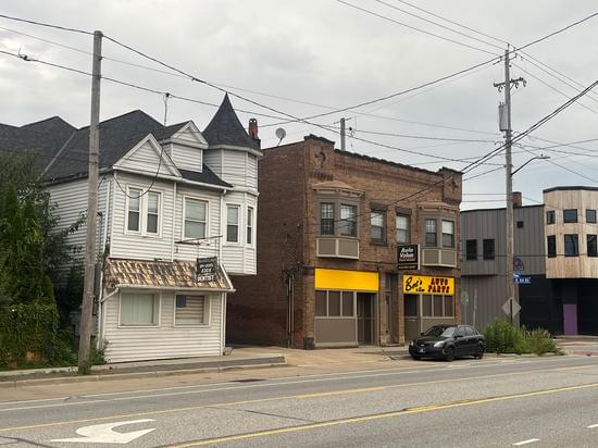 Chris Alvarado, executive director of the nonprofit organization Slavic Village Development (SVD), indicates this block is by design – it’s filled with legacy businesses, ones that have been around for decades, together with new businesses. SVD is interested in identifying nodes where there is already activity and moving out. One block east are two vacant lots that are being pitched by SVD for development.