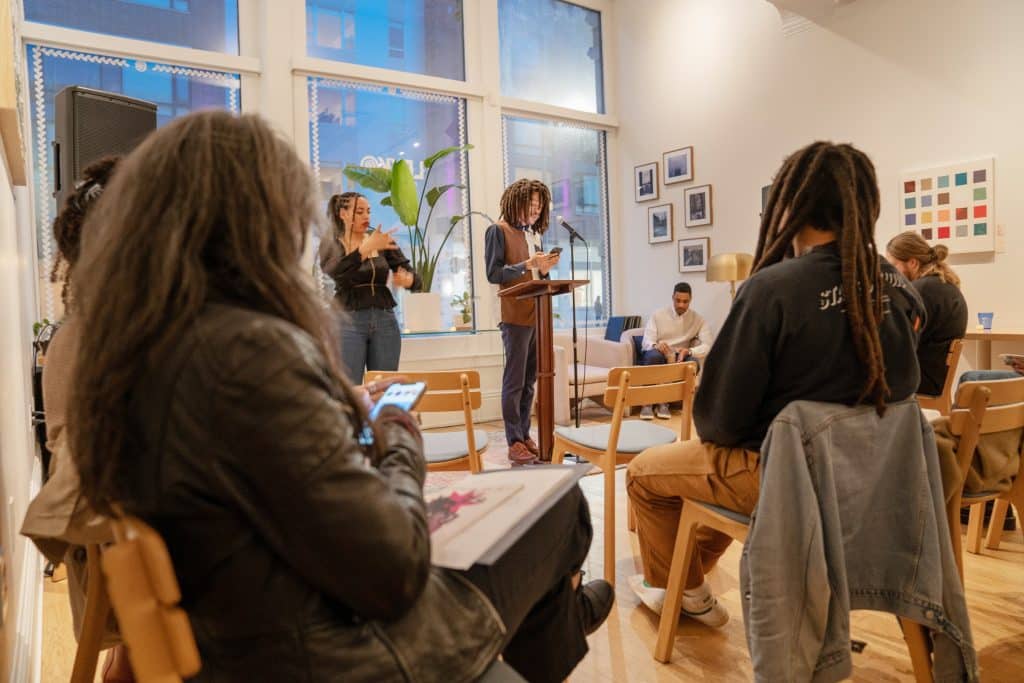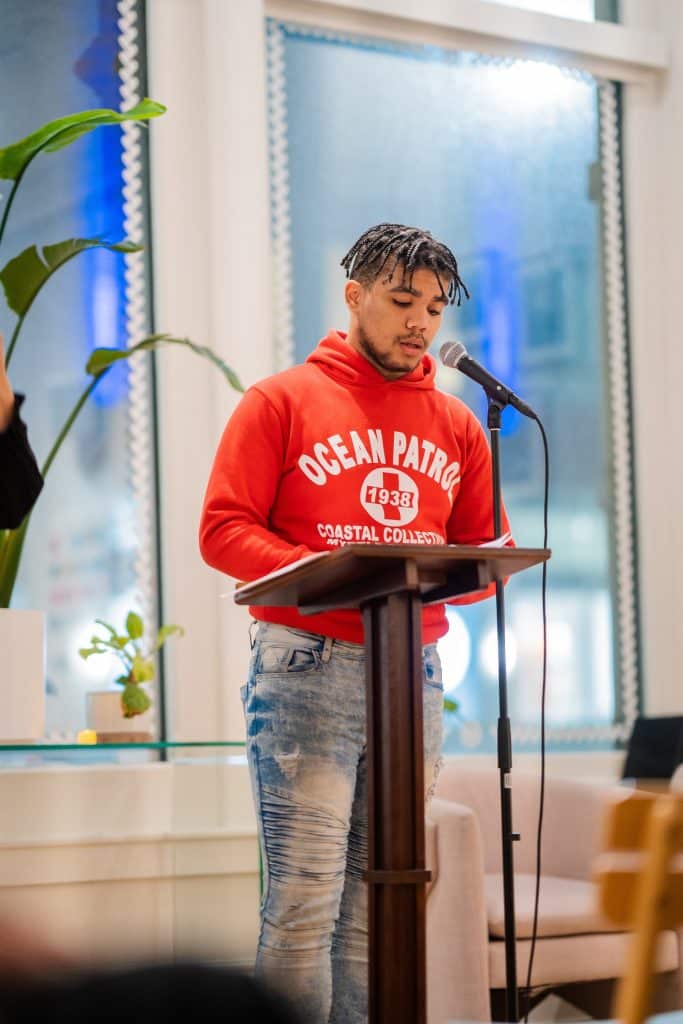 Jabari shared a couple of his own poems to an engaged and attentive audience, who closely watched him and clapped after every “thank you” he finished with. His poetry featured vulnerable explorations of mental battles, emotional trials and promise. His final poem, Let there be hope, discussed a conversation he had with his mother while he was still in juvenile detention and awaiting freedom, while his mother instilled hopefulness in his return home.