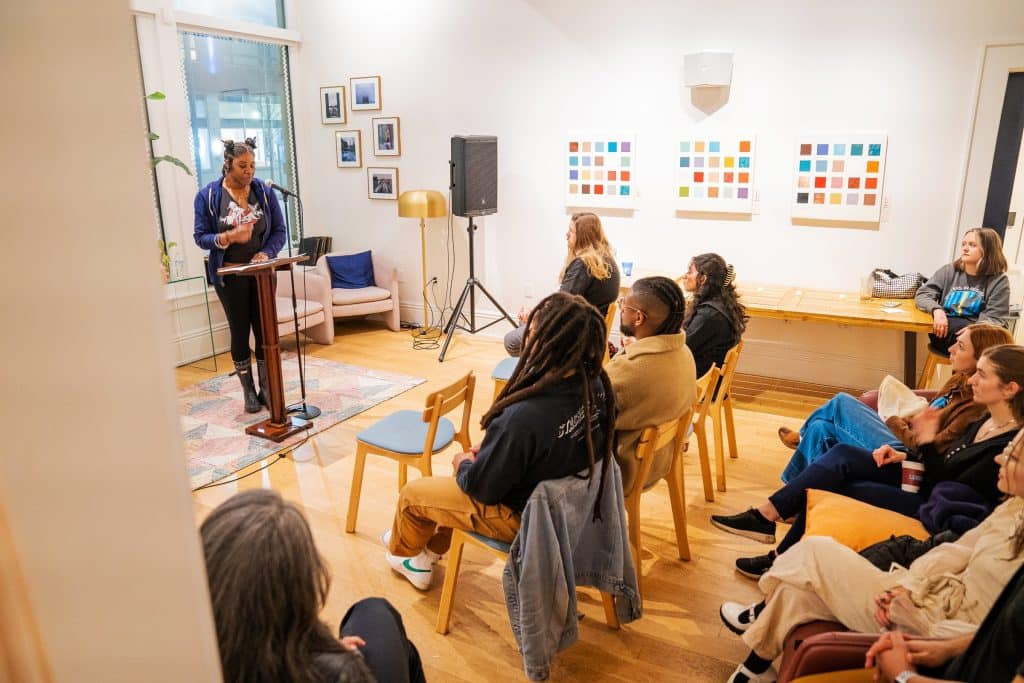 Harris spoke about the challenge of seeing so many young black children in detention centers when working with Writers in Residence.